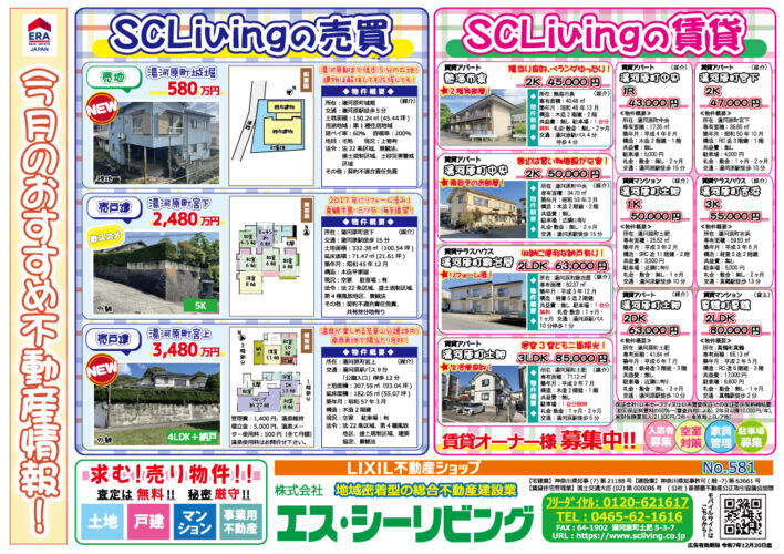 また、オススメ不動産として今月は湯河原の古家付土地、中古戸建をご紹介しています。
