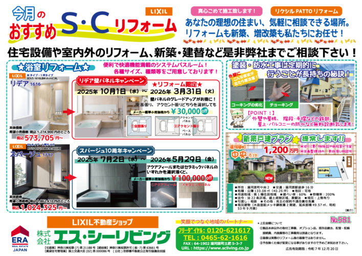 令和7年11月度広告を公開しました。今月のおススメリフォームは浴室リフォームです。