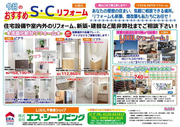 令和8年1月度広告を公開しました。今月のおススメリフォームは洗面化粧台リフォームです。